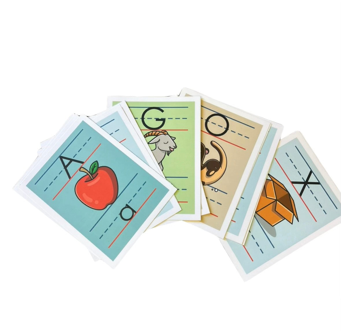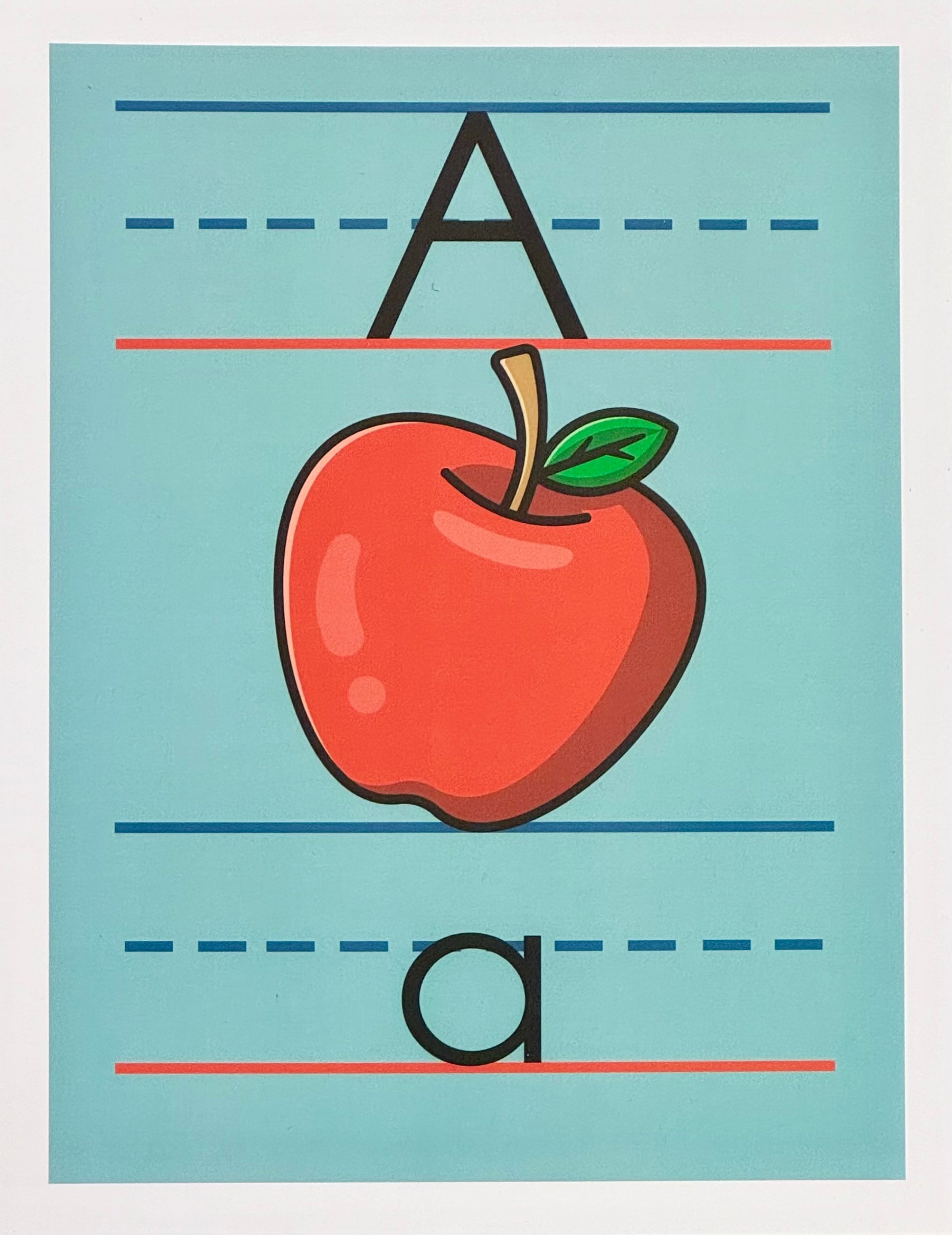 Print Alphabet Posters - Each poster features an upper and lowercase letter in an easy-to-read print font. The ruled midline reinforces proper letter formation. A full-color image of the corresponding keyword is also displayed on each poster.